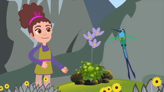 Entra mágicamente al páramo de Mérida donde es abordada por un colibrí muy impaciente se hacen amigos le muestra lo que dice el libro del él, lee sobre la flor mas dulce