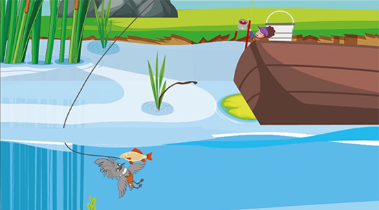 Cierto día Julieth está de pesca con su abuelo en un pequeño bote; de repente ven un ave que se acerca rápidamente al agua y de pronto se sumerge en un clavado olímpico. Julieth casi se lanza a rescatarla, su abuelo la detiene, le dice que es un ave anfibia, que vuela y también nada, se llama “Martín Pescador”.