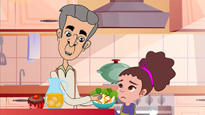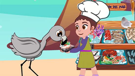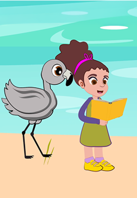 “...Enserio eres un flamenco!? que genial, vamos a leer un poco sobre ti en mi libro”, Julieth le ayuda a comprender que la comida no sabe tan bien al principio, luego nos adaptamos a ella, de esta forma el Flamenco cambia sus plumas a un lindo color coral tan brillantes como el sol del atardecer.